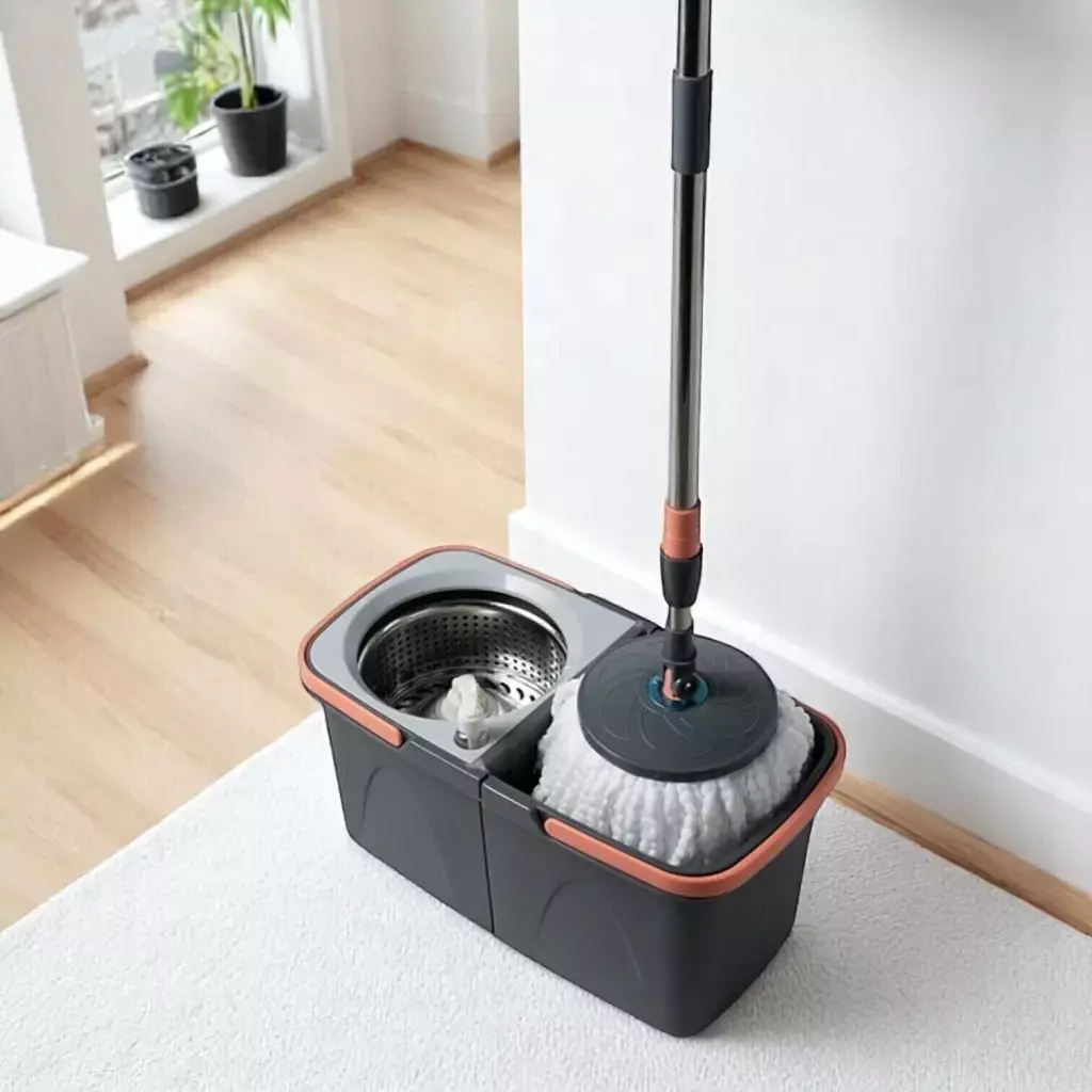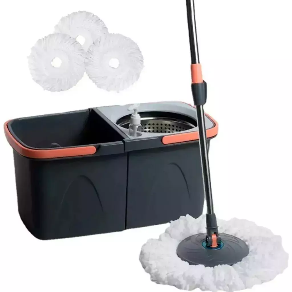 Mantén tus pisos impecables con el balde mopa, una solución práctica y eficiente. Su sistema de centrifugado permite limpiar y secar la mopa rápidamente y sin esfuerzo. Este kit incluye las herramientas necesarias para una limpieza cómoda y efectiva.